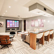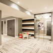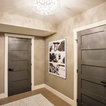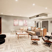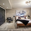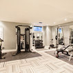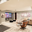 Contemporary multi-use home gym in Toronto with grey walls, carpet and multi-coloured floors. — Houzz