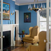 Actually in the article for Old House Journal it states the colors used were Benjamin Moore Cypress Green, Mannequin Cream, Mink Violet and Deep Indigo.