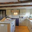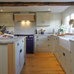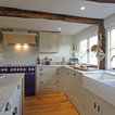 The main Focus of the kitchen was a Mercury Range Cooker in Blueberry. Above the Mercury cooker was a bespoke hood canopy designed to be at the correct height in a very low ceiling room. The sink and tap where from Franke, the sink being a VBK 720 twin bowl ceramic sink and a Franke Venician tap in chrome.