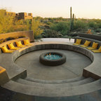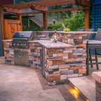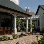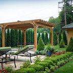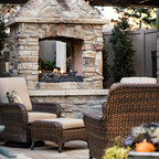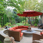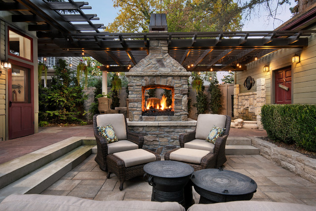This is an example of a medium sized victorian back patio in Boise with a fire feature, concrete paving and a pergola. — Houzz