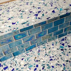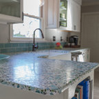 Manufacturer of custom recycled glass counter tops and landscape glass aggregate. The countertops are individually handcrafted and customized, using 100% recycled glass and diverting tons of glass from our landfills. The epoxy used is Low VOC (volatile organic compounds) and emits no off gassing. The newest product base is a high density, UV protected concrete. We now have indoor and outdoor options. As with the resin, the concrete offer the same creative aspects through glass choices.