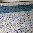 Recycled glass used we Bombay blue liquor bottles, Coke bottle green, oyster shells and "urban" glass w/ mirror