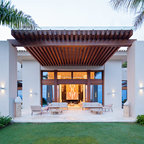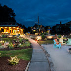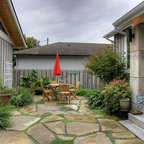 Photo of a medium sized coastal back patio in Charlotte with natural stone paving and no cover. — Houzz