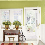 9. Save space with swing-arm sconces. Sconces are great space savers, freeing up room on tabletops or even making it possible to do without a table altogether. Often seen bedside, swing-arm sconces can also work wonders in a tight corner in the living room or above a desk. Renters take note: Most lighting stores offer swing-arm sconces with cord covers, so you can simply plug them into the wall.