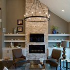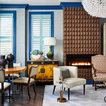 insane fireplace, furniture mismatch = brilliant