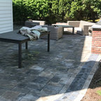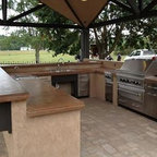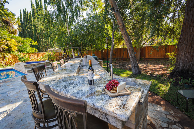 Photo of a large traditional back patio in San Francisco with an outdoor kitchen, natural stone paving and no cover. — Houzz