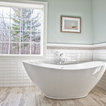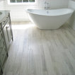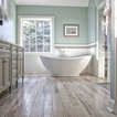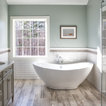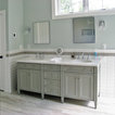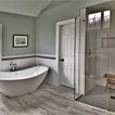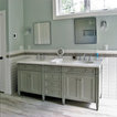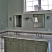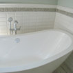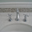 We both like this bathroom. The tile surrounding the sink and tub area. The colors are calming.