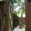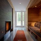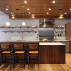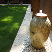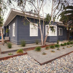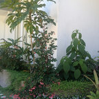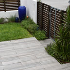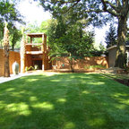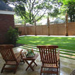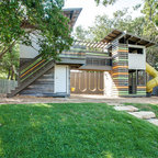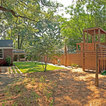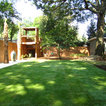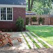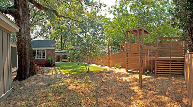 The inspiration for materials in the rear yard draws from the recently renovated interior spaces of the kitchen and living area. The design provides a seamless transition from inside to out. The limestone patio is sized to accommodate seating and gradually leads you out into the new lawn. The line of palms will provide some privacy from the neighbors and a strong focal element from the porch. The kids now have an engaging play space that was built to visually enhance the backyard, not detract from it. All of the new plantings are native and create a lush, serene atmosphere.