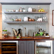 open shelves for wet bar consider a beverage fridge, sink, freezer drawer