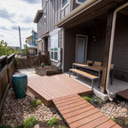 The clients requested a play structure as part of their backyard renovation, but they did not want it to overwhelm the space. This custom built play structure in located in one corner of the yard and is built as part of the fence. It provides a nice kids zone for play and activity while leaving ample room for a patio and gathering space for the adults.