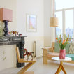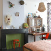 couleurs poudrées plus rouge plus lampe bleu outremer sur la cheminée le style éclectique