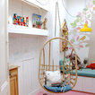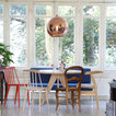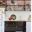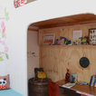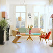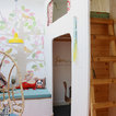 Boesveldt and Yashkin fell in love with their home’s original details, like the partition wall (common to older European homes) that divides the living and dining rooms. The mantel is also original to the home. The couple painted it black to highlight its ornate features and to make it stand out amidst the neutral tones of the room. Boesveldt inherited the antique clock from her grandparents.The cardboard horse displayed on a chair in the living room is from Boesveldt and Yashkin’s Kidsonroof Totem collection. The couple originally specialised in designing kids’ decor and play items, but as their own three children are growing, they are now working on launching a broader collection of furniture and decor pieces through Studio Roof in early 2014.