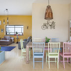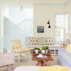 It mixes well with other sorbet shadesPeach is a good team player and it gets along well with many other colours. It works particularly nicely with other sorbet shades, such as mint green and duck-egg blue; anything in the same tone will combine well. In this light and sunny room, the peach sofa cushions quietly play their part in creating a soft, pastel scheme that’s relaxing and restful.View more living room photos