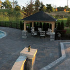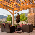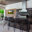 This outdoor kitchen remodel turned out fabulous. Custom raised bar top with impeccable stone installation. Custom hood installation. Removed existing openings with roll down screens.