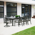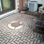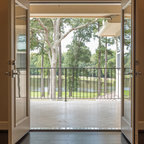 Classic patio in Miami with an outdoor kitchen, tiled flooring and a roof extension. — Houzz