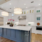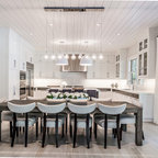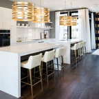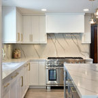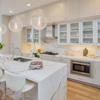 This is an example of a contemporary u-shaped kitchen in Boise with a submerged sink, flat-panel cabinets, white cabinets, white splashback, stainless steel appliances and a breakfast bar. — Houzz
