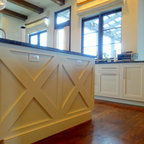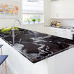 I like the blackish countertops. I know marble we can't do because the maintenance would be horrendous. But I like a big pattern. It really makes a statement.