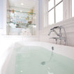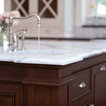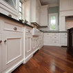 Inspiration for a classic kitchen in Chicago with recessed-panel cabinets, a belfast sink, white cabinets, white splashback and stone tiled splashback. — Houzz