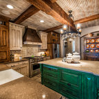 Rustic center island style different from the main L shape counter.