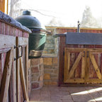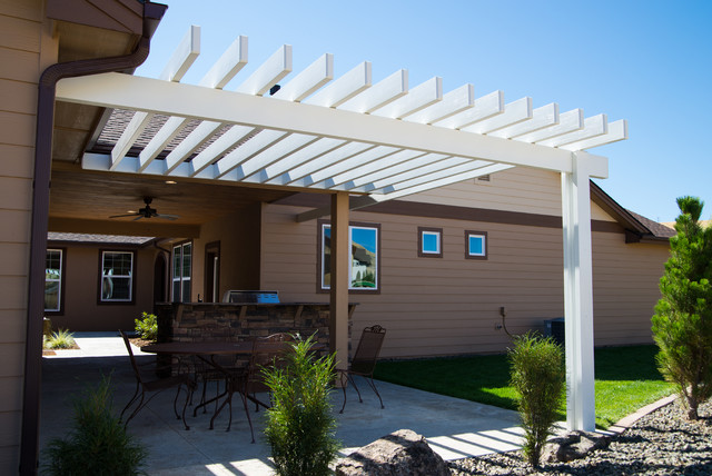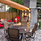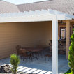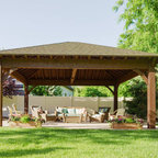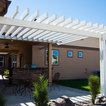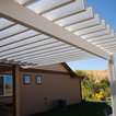 This pergola is the final touch to a beautiful outdoor kitchen. The spaced out rafters allow light through to the patio, while still reducing heat.
