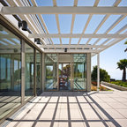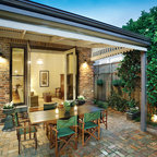 With a MOCKWOOD pergola on one side of the home, and our Apollo opening roof system on the other gives homeowners endless options to entertain guests and enjoy their outdoor area.