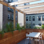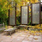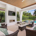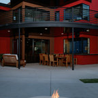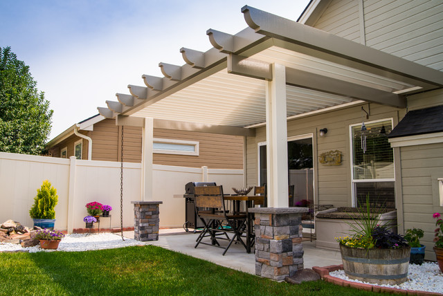 Photo of a large modern back patio in Boise with an awning. — Houzz