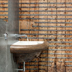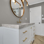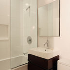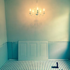 Inspiration for a traditional bathroom in New York with a console sink and mosaic tiles. — Houzz