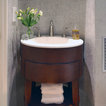 Round the Vanity Tight spaces can make sharp corners hip hazards. If the corners of a vanity would get in the way, opt for a rounded style. Yes, a round vanity can work in a square space. No more bruised hips!