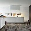 Make a feature of toolsInject a little warmth into a slick space by displaying functional items you use in your office, bathroom or kitchen, nicely demonstrated here by the assorted cooking utensils on a rail behind the worktop. In your office, it’s surprising how orderly folders, files, pens and paperclips can look lined up on shelves. If having these on display is a step too far for your minimalist space, buy (or paint) boxes in a single colour and use them to keep your paraphernalia neat but interesting. In your bathroom, beautifully packaged toiletries can be artfully arranged (while the dingier, more bog-standard stuff can still be hidden away).