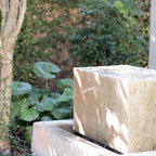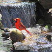 bird bathing pond with branch across for birds and lots of vegetation all around