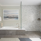 Modern bathroom remodel with open shower and tub area