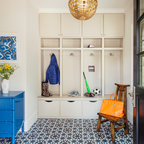 Design ideas for a farmhouse front door in Atlanta with a black front door and a single front door. — Houzz