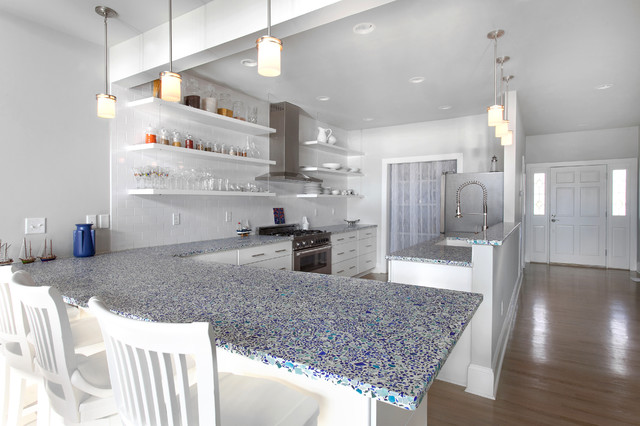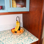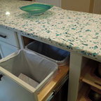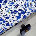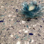 Manufacturer of custom recycled glass counter tops and landscape glass aggregate. The countertops are individually handcrafted and customized, using 100% recycled glass and diverting tons of glass from our landfills. The epoxy used is Low VOC (volatile organic compounds) and emits no off gassing. The newest product base is a high density, UV protected concrete. We now have indoor and outdoor options. As with the resin, the concrete offer the same creative aspects through glass choices.