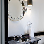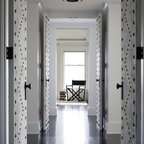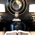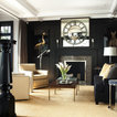 Traditional living room in Boston with black walls and a reading nook. — Houzz