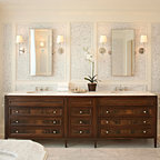 Working with the homes original floor plans from 1886, our skilled design team reconfigured the space to achieve the desired solution. The Master Bath design included cabinetry and arched doorways that create the sense of separate and distinct rooms for the toilet, shower and sink area, while maintaining openness to create the feeling of a larger space. The sink cabinetry was designed as a free-standing furniture piece which also enhances the sense of openness and larger scale.