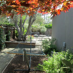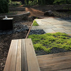 Photo of a medium sized contemporary back partial sun garden in Burlington with natural stone paving and a water feature. — Houzz