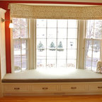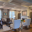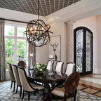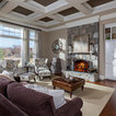 Saw these 2 coffered ceilings. Different looks and ideas: 1. Stained pine 2. Painted gray to match to your kitchen and pull together. Thoughts?