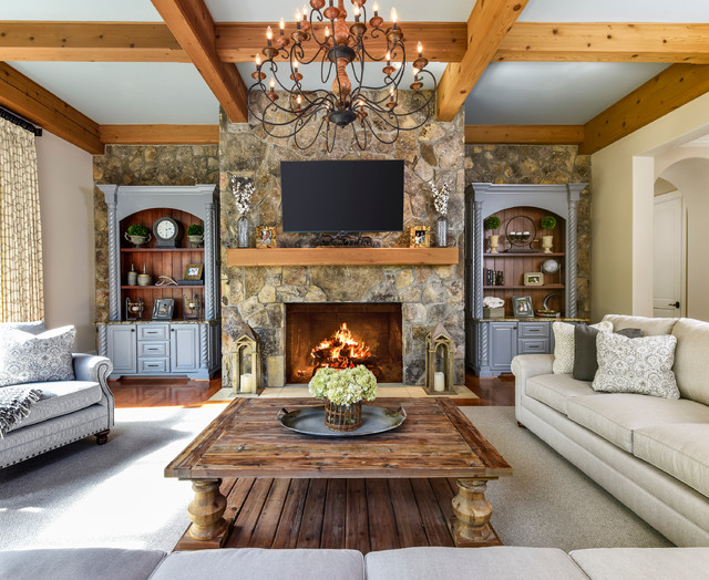 Rustic Comfortable Family RoomFamily & Games Room, Charlotte