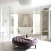Love your curvesThere aren’t many seats that look good positioned in the centre of a room, but the low-level ottoman is an exception, particularly round designs. With no awkward angles and plenty of space to spread out, this buttoned number makes this bathroom a place to linger longer.