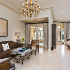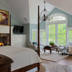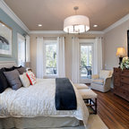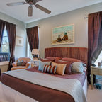 Inspiration for a world-inspired master bedroom in Charleston with white walls and travertine flooring. — Houzz