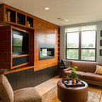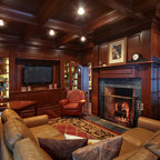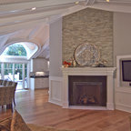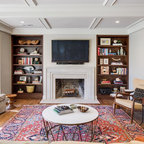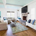 This is an example of a medium sized traditional enclosed living room in Charleston with blue walls, a standard fireplace, a concrete fireplace surround and a wall mounted tv. — Houzz