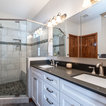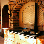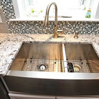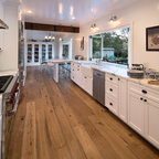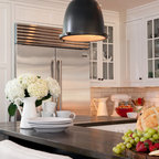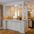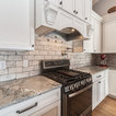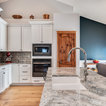 This Kitchen has a fresh, comfortable appeal with the Shaker style white cabinets and the organic feel of the stone Backsplash and countertop. Transitional style at it's best!