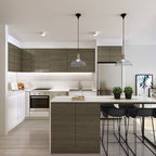 Look at the color interplay from the island to the wall...orientation in the room will be similar to your house...