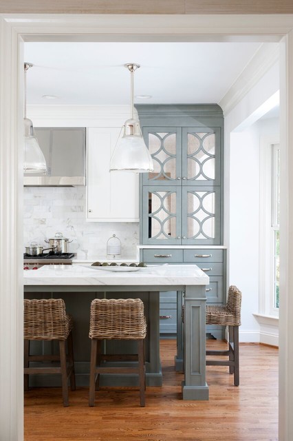 White Transitional Kitchen with Gray IslandTransitional Kitchen, DC Metro